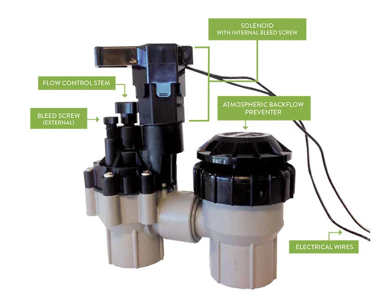 Backflow prevention of irrigation systems is required by law. Therefore, in California, you will typically find each valve has an atmospheric backflow preventer attached to it. These are called anti-siphon valves. Large landscapes may have one large backflow preventer for the entire irrigation system.