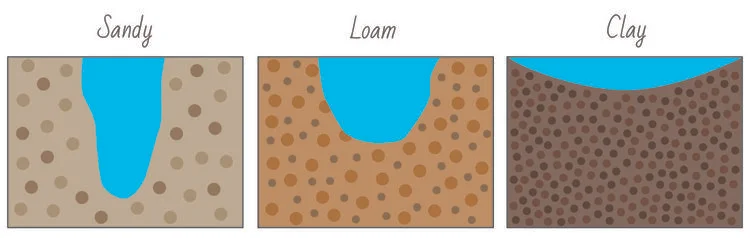 Know your soil (See Soil chapter). Clay soils absorb water more slowly and hold the water longer than sandy soil. Therefore, if you have a clay soil, you can get away with watering a lot less days than if you have a sandy soil. However, when you do water, you will probably have to break up your watering time into several intervals to allow the water to soak in. Otherwise you will get runoff.